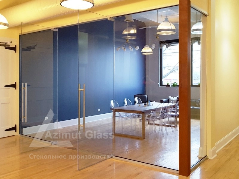 Если Вы желаете купить качественные стеклянные, в том числе маятниковые, двери по доступной цене, обратитесь в компанию Azimut Glass.