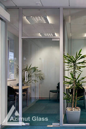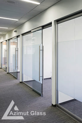 Выгодно заказывать стеклянные входные двери для офиса в «Азимут-Гласс». Предоставляем клиентам: