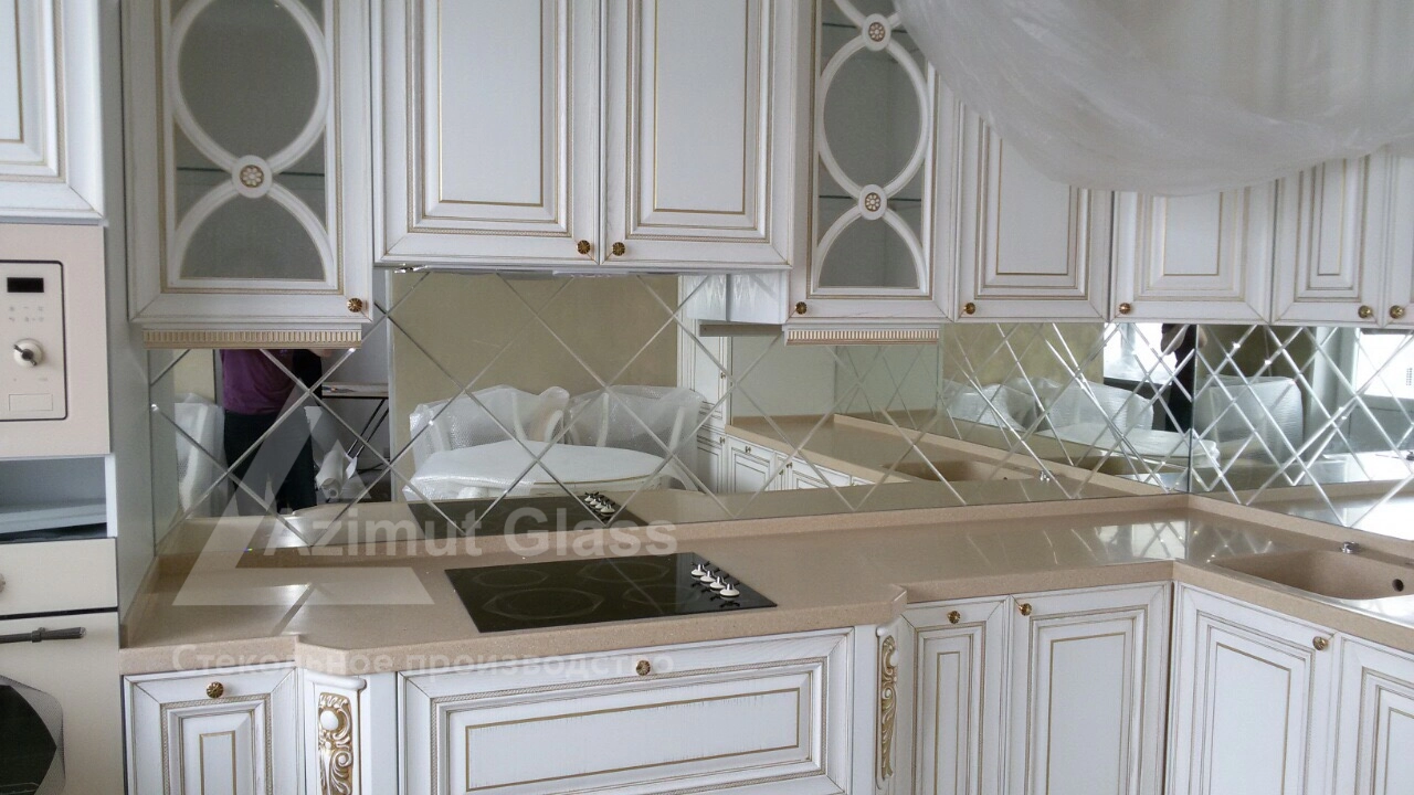 Зеркальный фартук для кухни – стильное и эргономичное решение для защиты стен от пара, брызг, капель жира, температурного воздействия. Конструкция из зеркал отлично впишется в интерьер помещения любой площади.