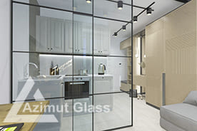 Предлагаем заказать в компании «Азимут-Гласс» стеклянные перегородки для зонирования под дизайн Вашей кухни, гостиной или спальни. Гарантируем, что подобные индивидуальные решения для пространства Вашего жилища Вы не встретите ни в каком другом помещении.