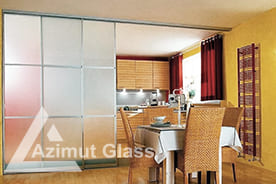 Если Вам необходимо отделить в квартире-студии рабочую зону кухни от столовой - закажите в компании "Азимут-Гласс" изготовление и установку стеклянной перегородки!
