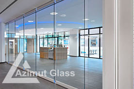 Позвоните и узнайте, сколько стоит изготовление с установкой под ключ современных раздвижных перегородок для оснащения офисного помещения – в «Азимут-Гласс» Вы можете купить эксклюзивные стеклянные изделия по привлекательной стоимости!
