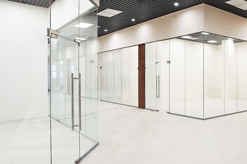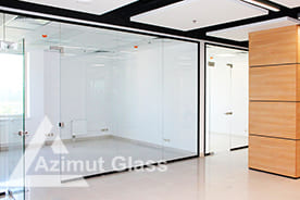 Позвоните в «Азимут-Гласс» и узнайте, за какую цену можно заказать изготовление и купить матовые или прозрачные цельностеклянные перегородки для зонирования офисного пространства. Вас ожидает выгодное коммерческое предложение!