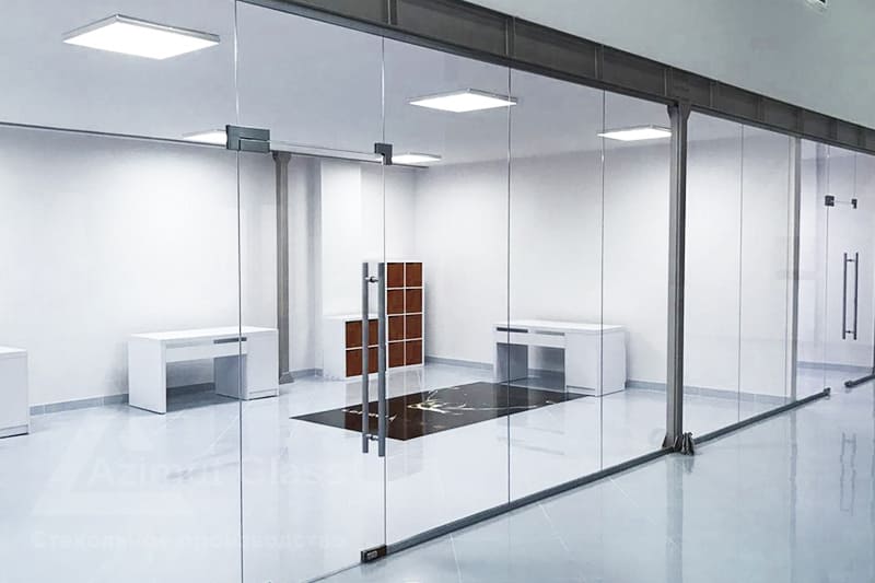Цельностеклянные офисные перегородки являются популярным вариантом стационарных стеклянных конструкций, привлекая своей легкостью, воздушностью, отсутствием видимых каркасов и профилей. Это отличный способ разграничения внутреннего пространства офиса или торгового помещения, и одновременно сохранение эффекта его целостности и обеспечение максимального естественного освещения. И если Вам нужны красивые и функциональные цельностеклянные конструкции, эксклюзивные офисные перегородки для зонирования рабочего пространства - в компании «Азимут-Гласс» изготовят на заказ любой удобный для Вас вариант, обеспечат доставку и установку изделия в Санкт-Петербурге и Ленобласти.