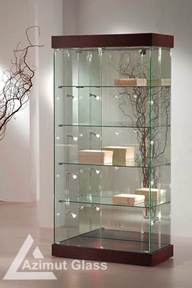 Стеклянная витрина уместна не только в магазине для демонстрации дорогих категорий товаров, но и в гостиной квартиры или частного дома. Это современное решение в интерьере, красивый декоративный элемент и удобное функциональное решение. Она необходима для хранения и демонстрации различных сувениров, праздничной посуды и всего остального, что желательно использовать в качестве декоративного оформления интерьера и можно демонстрировать гостям. Светопрозрачная конструкция предполагает установку на пол или на тумбу. По расположению стеклянная витрина может быть прямой или угловой, в любом случае это великолепное украшение гостиной, которое Вы можете недорого заказать и купить в компании «Азимут-Гласс». Мы предложим, реализуем и доставим лучшее по цене и качеству решение для Вашего дома, магазина или офиса!