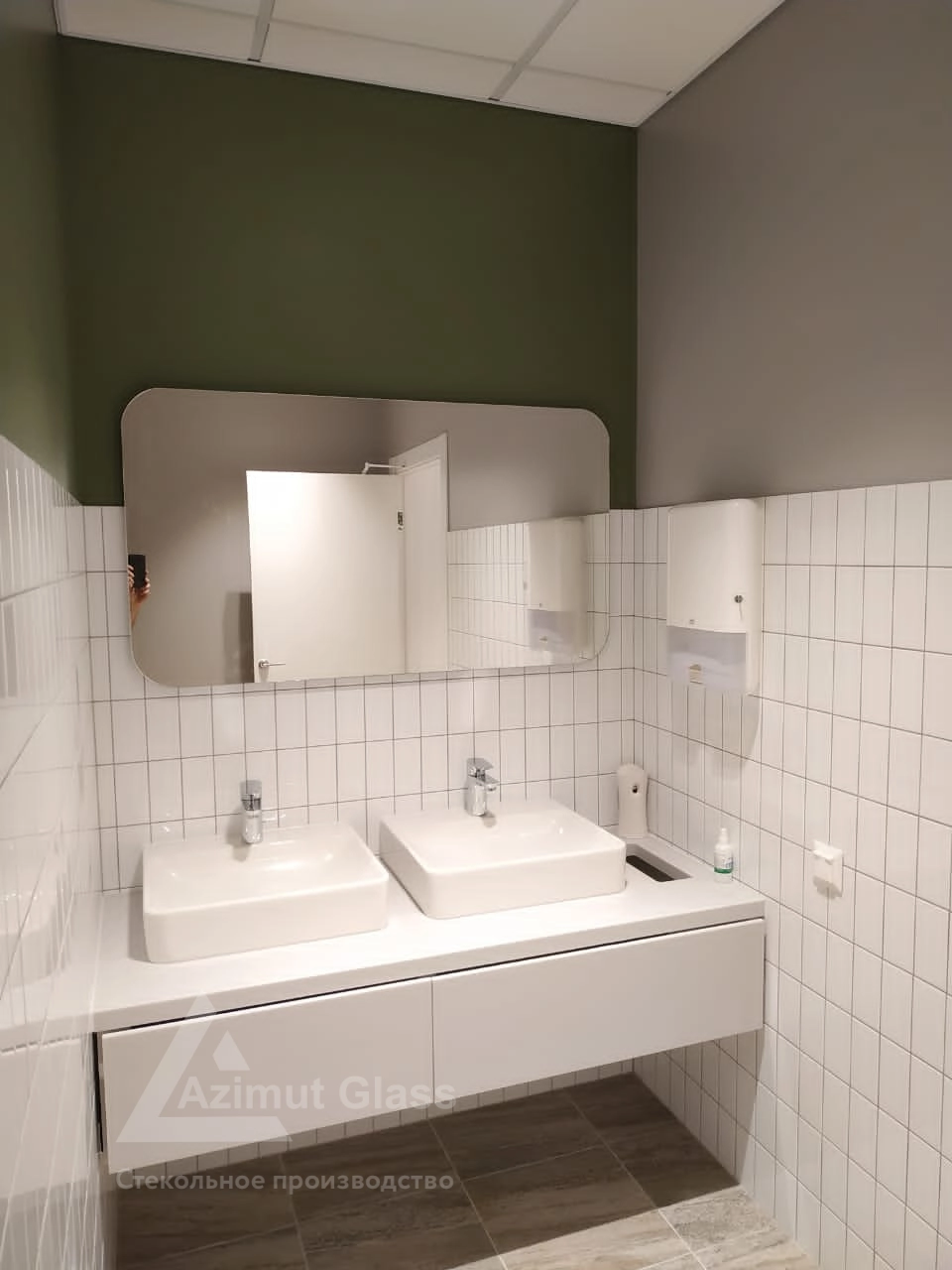 - Настенные отражающие полотна в санузлах офисных и торговых центров, административных и других помещениях.