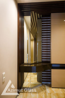 Зеркало сейчас — это обязательный элемент для прихожей. И если раньше его приобретали преимущественно с практичными целями, то теперь это деталь декора, вписываемая в стилистику интерьера. Резные рамы, вариации с ромбами или рисунками, или наоборот минималистичные зеркала для помещений в стиле лофт — всё это можно найти и купить в каталоге «Азимут-Гласс». Различия могут быть и по характеристикам материала, из которого изготовлена конструкция — мы предлагаем на выбор модели из оптивайта, а также состаренные, матовые и бронзовые.
