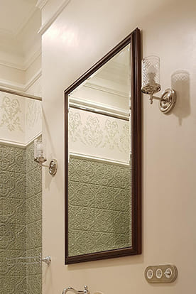 - Эксклюзивный элемент интерьера. Рама может быть оформлена в стиле модерн, ампир, классика или в любом другом варианте, соответствующем дизайну интерьера помещения спальни или ванной.