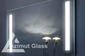 Зеркало – это важный функциональный элемент ванной комнаты, играющий важную роль и в дизайне интерьера. Существует множество вариантов оформления, но одним из лучших вариантов будет установка зеркала с подсветкой, изготовленного по индивидуальному заказу. Подсветка обеспечивает максимальное качество изображения, позволяя рассмотреть мельчайшие детали, а необычный дизайн изделия подчеркнёт своеобразность интерьера ванной комнаты, красоту мебели и сантехники. Нашим клиентам мы предлагаем заказать изготовление эксклюзивного влагостойкого зеркала со встроенной подсветкой, которое органично впишется в дизайн ванной комнаты. Компания «Азимут-Гласс» - это широкий ассортимент зеркальных изделий, низкие цены, эксклюзивный дизайн и полный цикл работ по изготовлению, доставке и монтажу.
