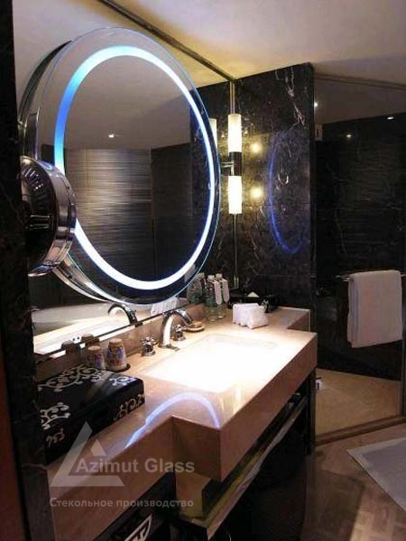 Зеркало в интерьере играет особую роль. Это и визуальное расширение пространства, и важный декоративный аксессуар, и сугубо функциональная роль отражающей поверхности. Наличие качественной встроенной Led-подсветки делает все достоинства зеркал ещё более акцентированными, позволяя создать особую зону уюта в любом помещении. Освещение может быть реализовано в любом виде и форме, с самым различным расположением светильников. Не ограничен и выбор цветового варианта подсветки, и различных дополнительных опций. Наши возможности позволяют реализовать любые требования, чтобы Вы могли купить практичное зеркало со встроенной светодиодной подсветкой, изготовленное в соответствии с Вашими требованиями и пожеланиями, доставленное и установленное опытными специалистами. Обратитесь в компанию "Азимут-Гласс" и станьте владельцем элегантного, визуально невесомого, стильного и функционального зеркала с собственными встроенными источниками света, эксклюзивного элемента интерьера для любого помещения.