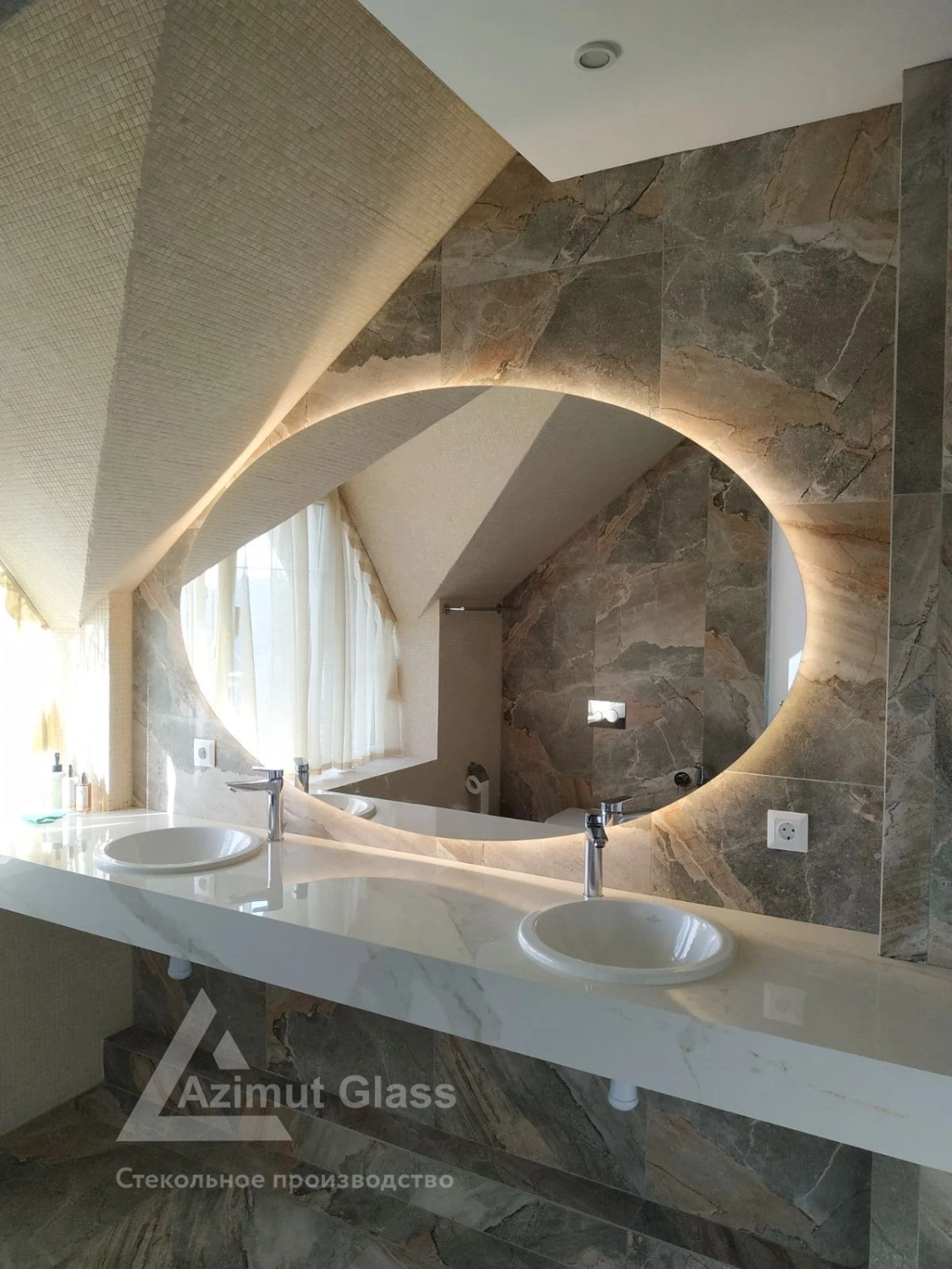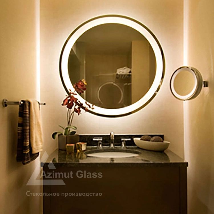 Обратитесь к нам и узнайте, сколько стоит оригинальное зеркало для ванной комнаты со встроенной подсветкой, изготовленное под заказ в нашей мастерской. Клиентам компании "Азимут-Гласс" гарантированы приятные цены на высококачественную продукцию из лучших материалов!