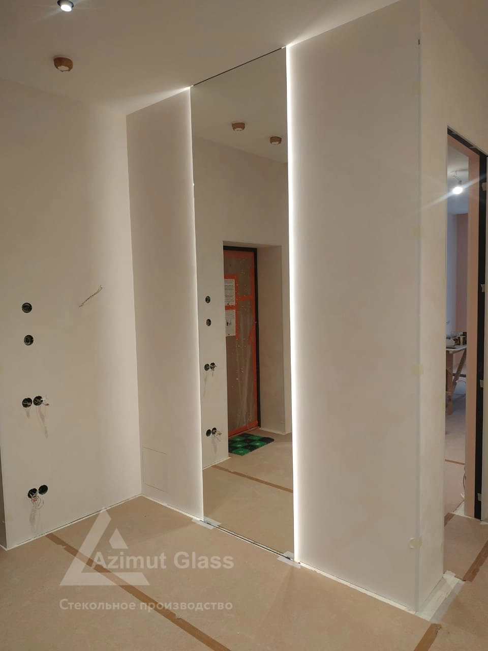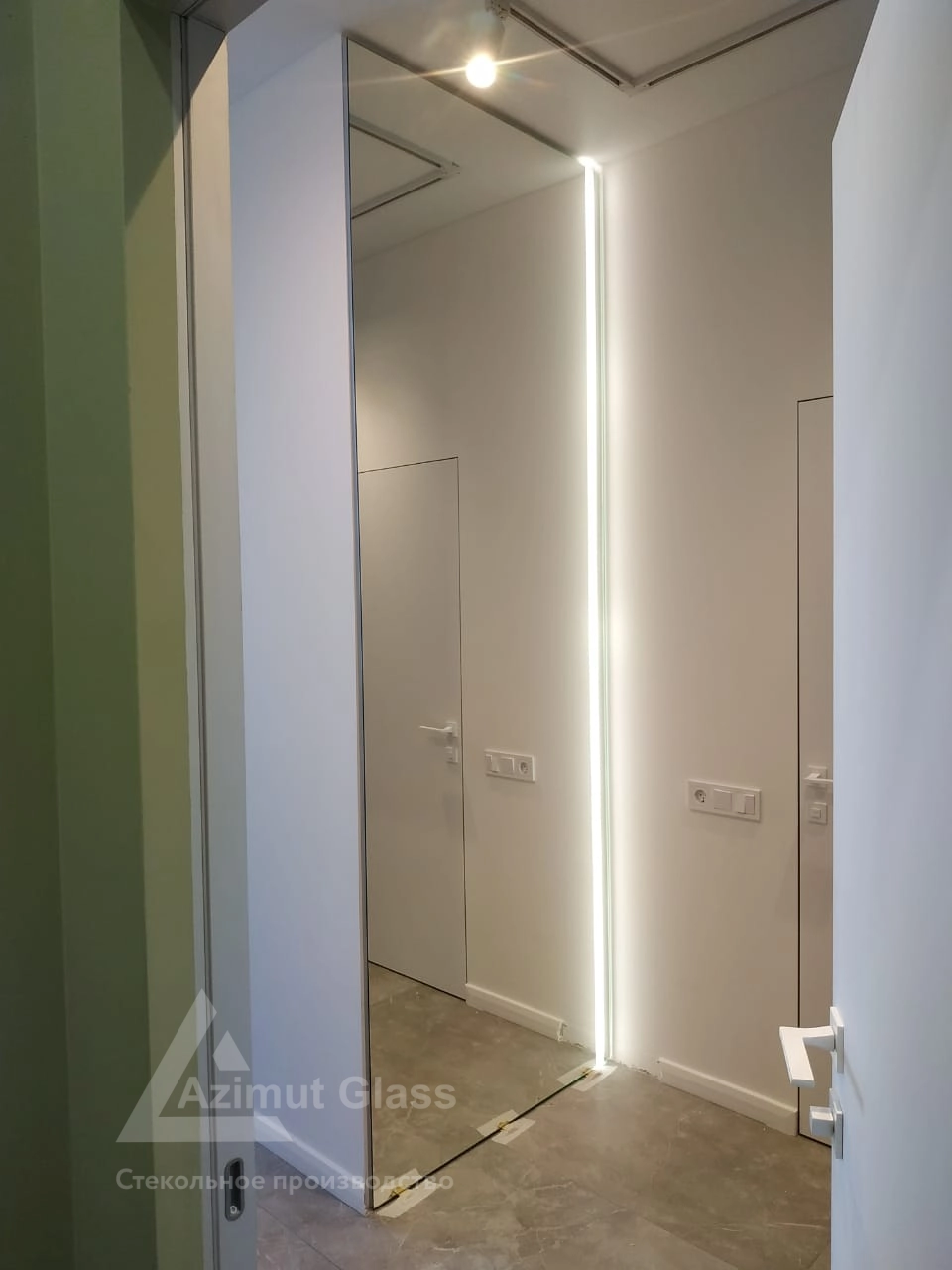 - Опционально выезжает замерщик. Оценивает помещение, снимает нужные размеры под зеркало длиной в пол, оснащенное подсветкой.