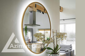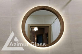 Зеркало в красивой декоративной раме – это классический элемент интерьера, который уже не одно столетие служит украшением гостиных, гримерок, ванных комнат и многих других помещений. Если же рассматривать современные варианты изготовления, то изысканный дизайн зеркальных изделий органично дополняют функциональные опции, ещё более подчеркивающие оригинальность и красоту. В первую очередь, это внутренняя или наружная подсветка, которая не только подчеркивает декоративные особенности рамы, но и значительно улучшает процесс использования зеркала, качество отражения и является оригинальным дополнением интерьера. Мы обеспечиваем изготовление и продажу эксклюзивных зеркал со встроенной подсветкой, оформленных в деревянную раму ручной работы, а также иные варианты изделий премиум-класса. В компании «Азимут-Гласс» Вы можете оформить заказ на изготовление зеркала с подсветкой по собственным эскизам, воспользоваться услугами наших дизайнеров или приобрести готовое изделие, выбрав в каталоге нашего интернет-магазина. Мы обеспечим производство зеркала в раме в соответствии с выбранной Вами спецификацией, его доставку и монтаж, предложим лояльные цены и гарантируем высокое качество работ!