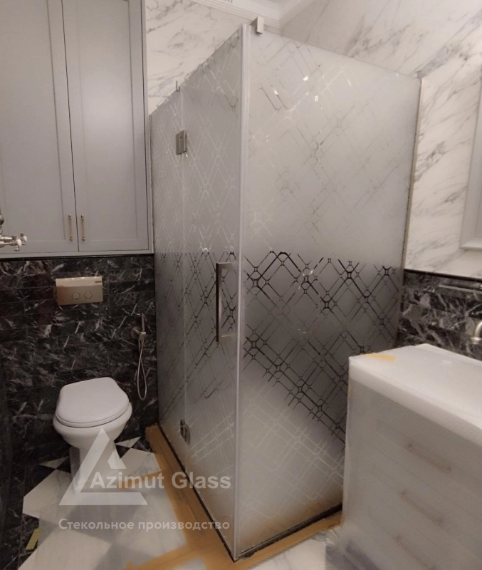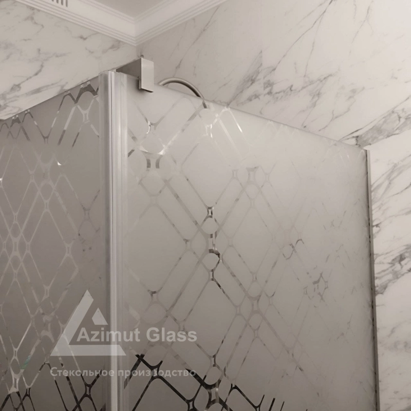 без проволочек после просьбы субъекта подготовлено предварительное одобрение изделия, выяснены авансовые цены идеи Душевая перегородка из матового стекла с рисунком - Петровский пр.;