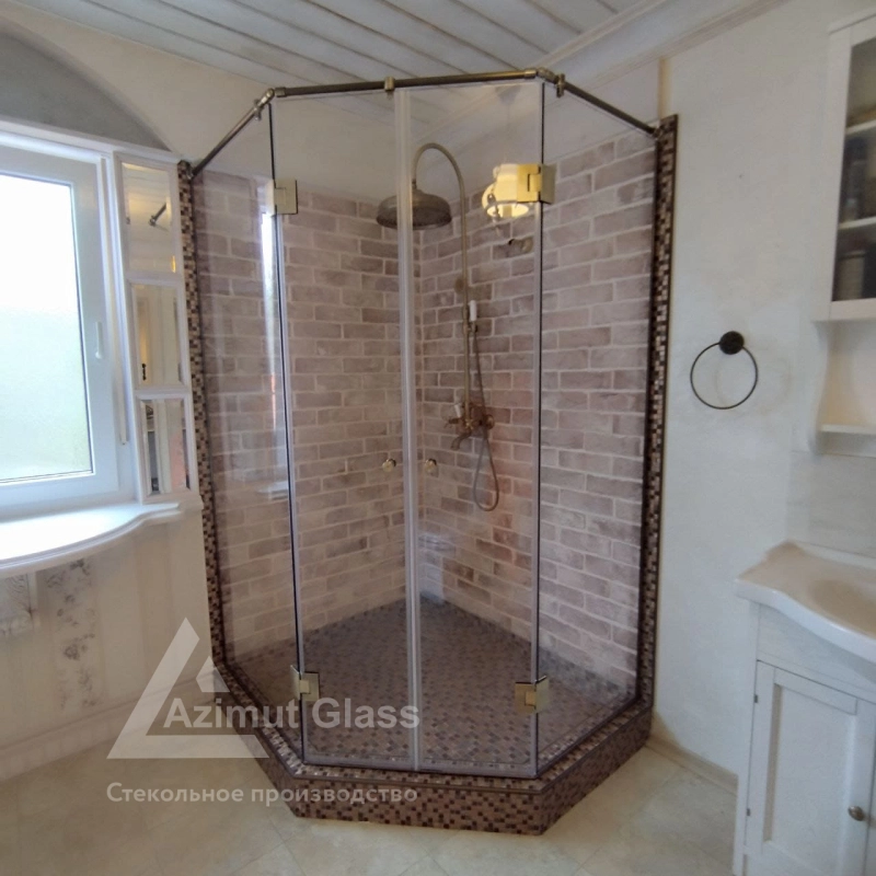 значительный стаж, глубокие компетенции монтажников, многообещающие, нечастые завершенные проекты помогают с высокой скоростью разрешать даже необычные запросы, как, например, построение угловой распашной перегородки для душа из стекла в деревне Порожек.