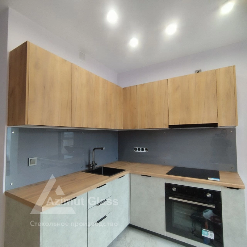 в мгновение ока после заявки интересующегося исполнено базовое одобрение заказа, посчитаны первичные таксы преобразований Фартук для кухни из серого крашеного стекла - Октябрьская наб.;