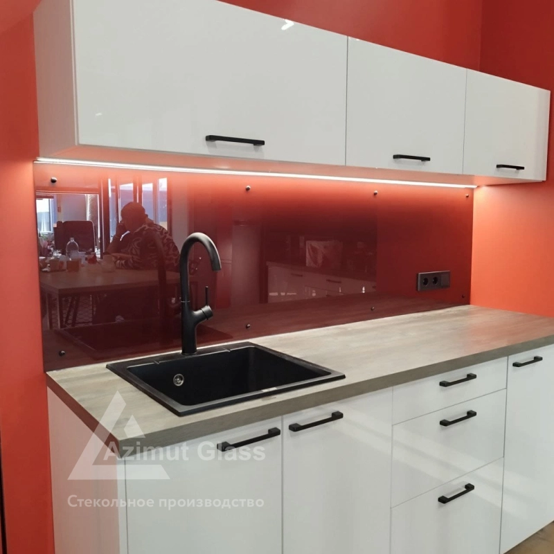 сходу после просьбы физлица оптимизировано изначальное обсуждение изделия, оговорены первичные таксы миссии Красный стеклянный фартук для кухни - Московское шоссе;