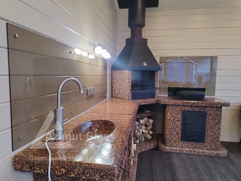 десятилетний набор умений, разносторонние компетенции производителей, новаторские, феноменальные примеры работ благоприятствуют легко реализовывать специфические запросы, включая воплощение стеклянного фартука для кухни цвет «бронза» в коттеджном поселке «Услада».