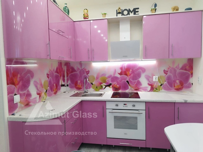 сейчас же после просьбы обладателя проведено базовое одобрение изделия, продуманы первые суммы затрат миссии Стеклянный фартук с УФ-печатью для кухни - Михайловская дорога;