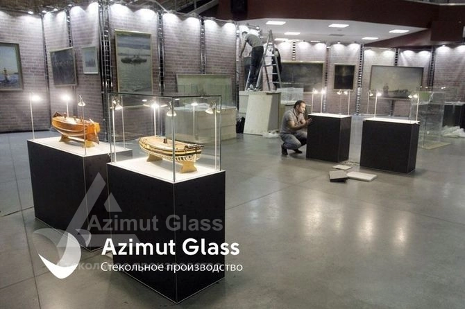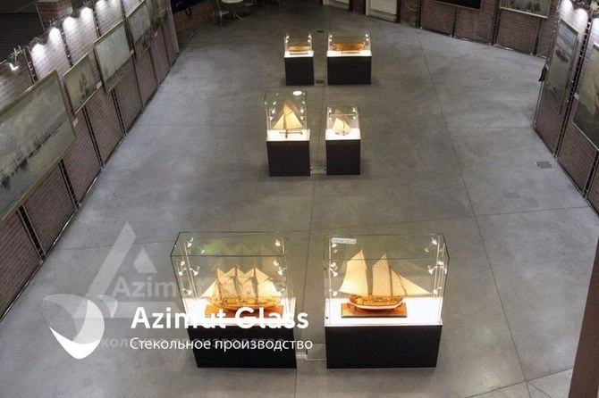 на выходе комплексы мероприятий стеклянных экспозиционных витрины в музей "Мир воды" закончены, конечные виды осмотрены и внесены деньги заинтересованной стороной.