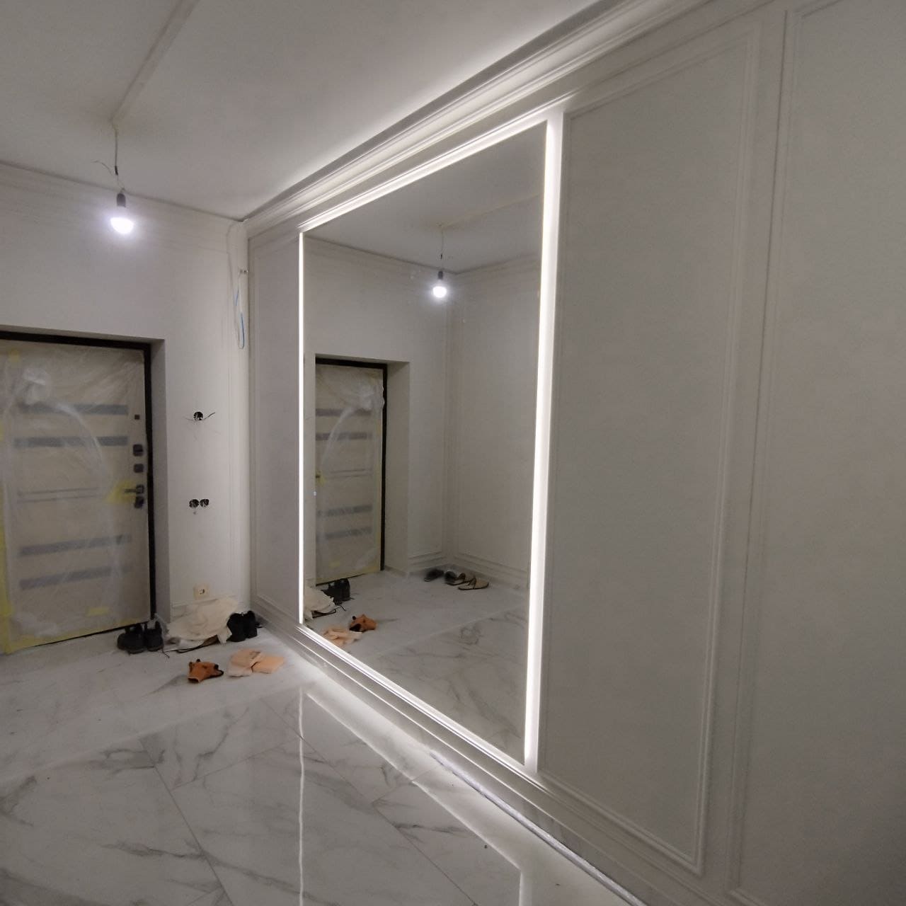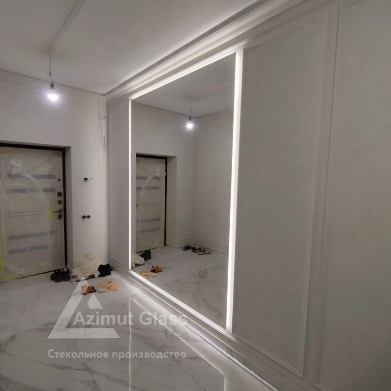 в итоге предметы зеркала с подсветкой 2,4 х 1,8 м в деревне Мистолово были завершены, видоизменения одобрены и проплачены владельцем офиса.