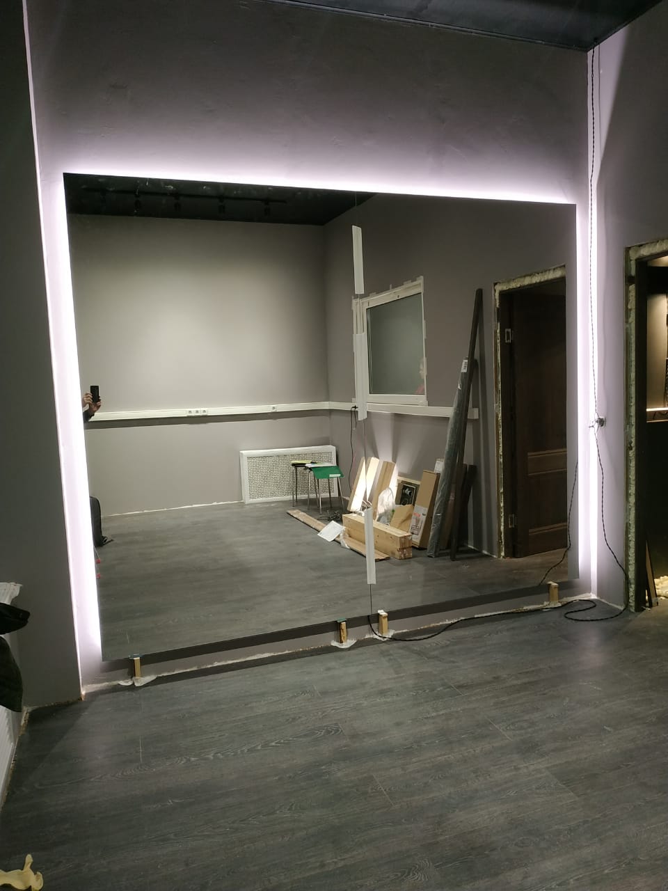 внушительный набор умений, редкие наработки установщиков, новаторские, непревзойденные завершенные проекты позволяют с высокой скоростью выполнять сложнейшие прихоти, в частности выпуск зеркала с тыльной подсветкой размером 3200 x 1500 мм на улице Егорова.
