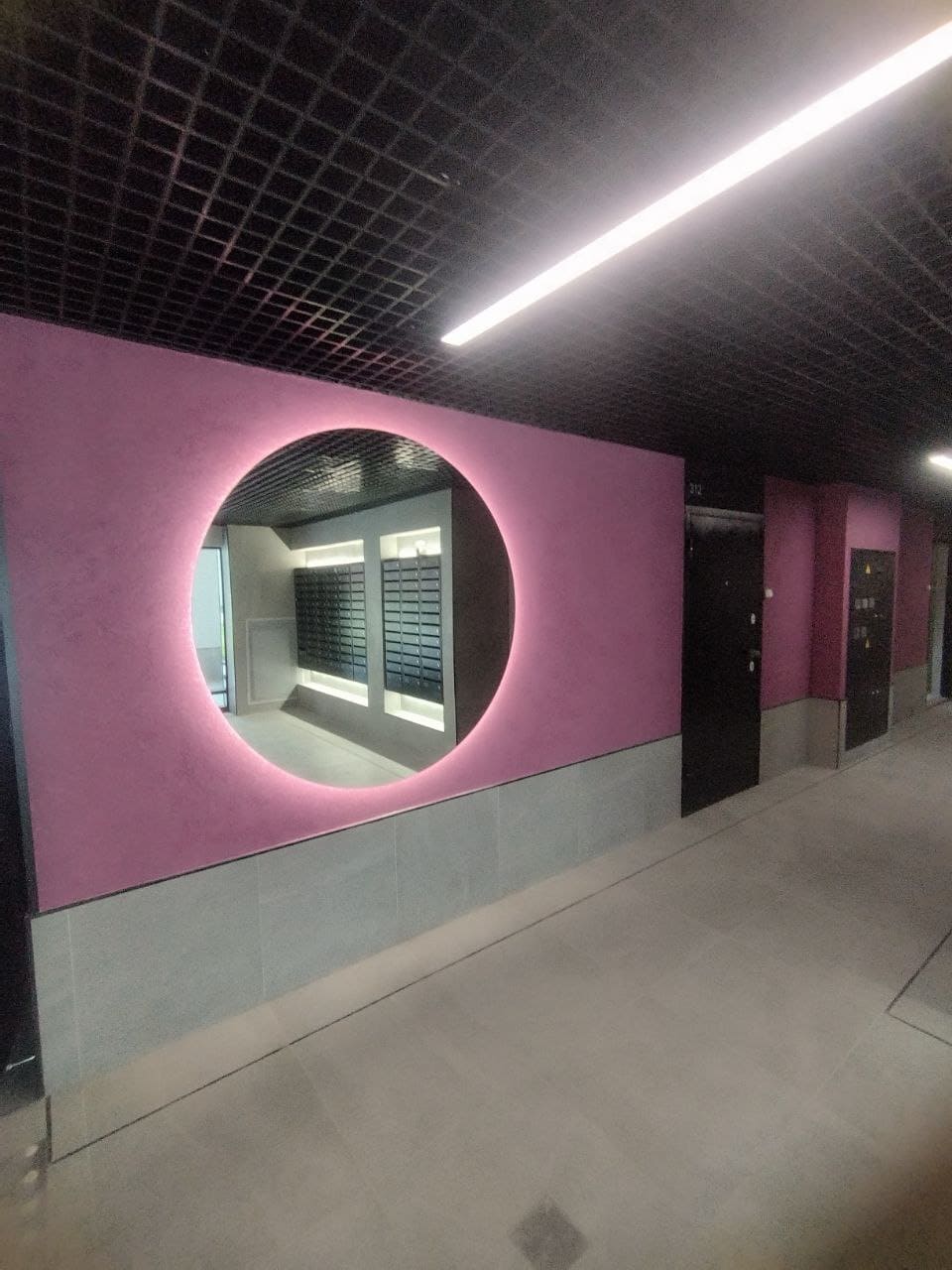 Круглое зеркало 1500 мм с подсветкой - подъезд жилого дома