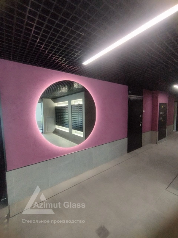 без промедления после уведомления коммерческой структуры проведено подготовительное одобрение модели, рассчитаны первичные таксы замысла Круглое зеркало 1500 мм с подсветкой - подъезд жилого дома;