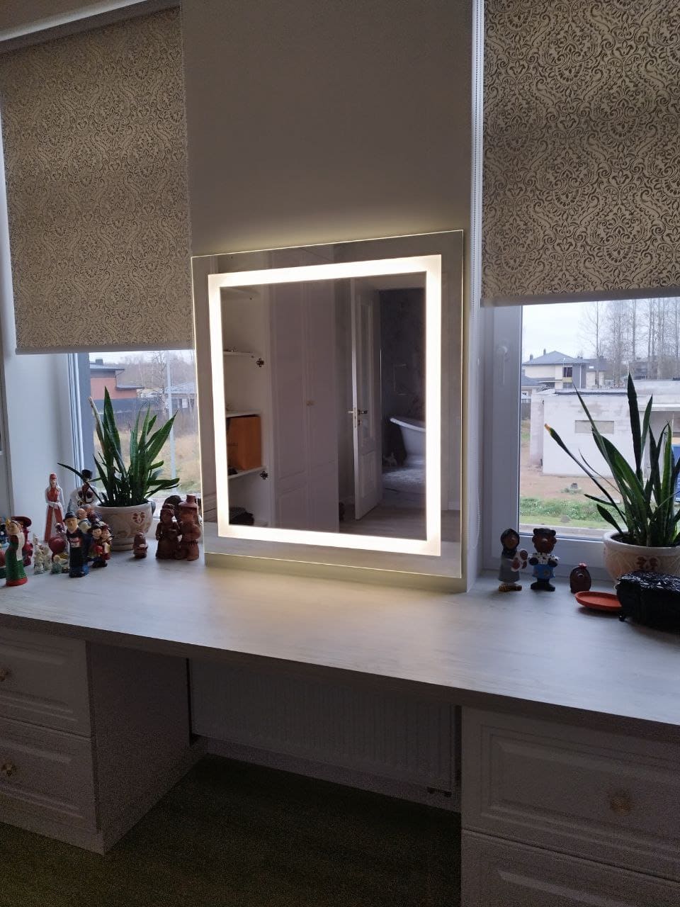 на данной стадии перечни задач зеркала с внутренней подсветкой в форме квадрата в коттеджном поселке «Петергофские дачи» доведены до финиша, исходы осмотрены и профинансированы потребителем.