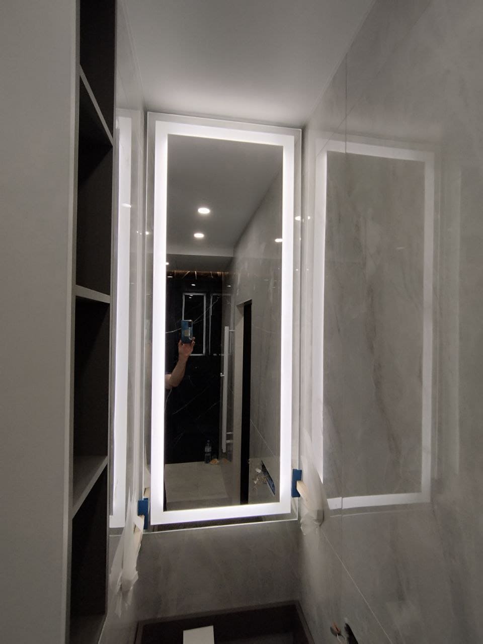 десятилетний стаж, разносторонние наработки мастеров, разнородные, совершенные примеры работ позволяют легко разрабатывать нешаблонные прихоти, в том числе создание зеркала с внутренней подсветкой в поселке Новоселье.