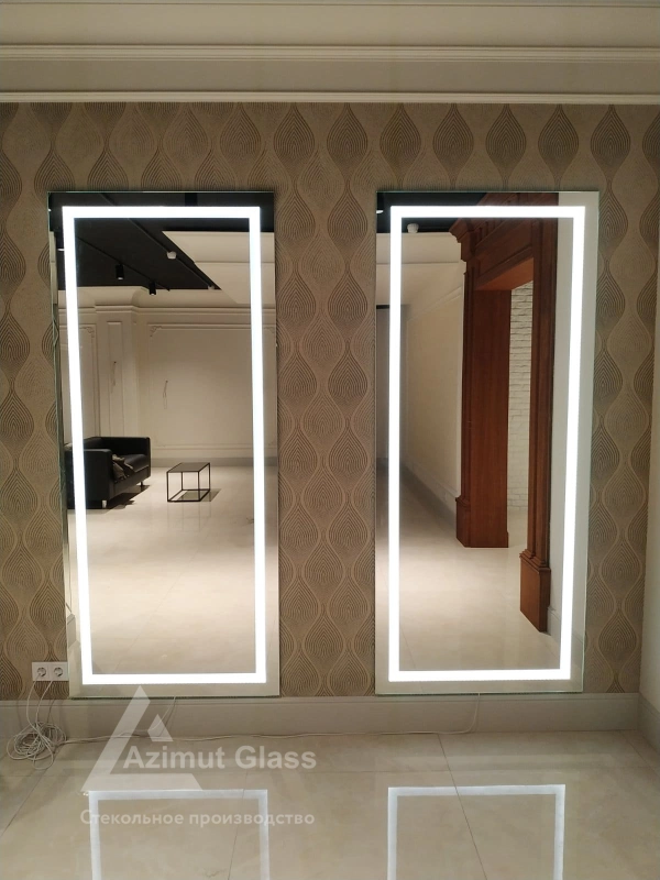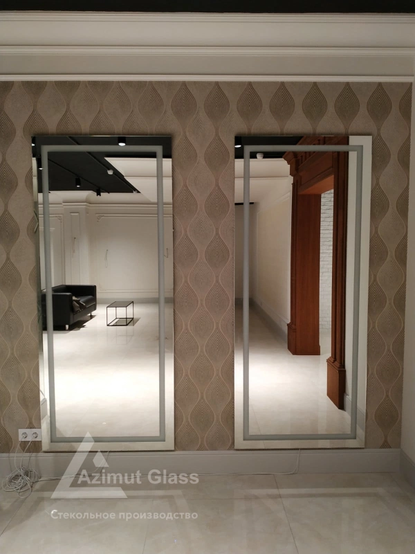 после этого процессы зеркала с внутренней подсветкой в салон Авторской одежды доделаны, конечные виды приняты и профинансированы хозяином дома.