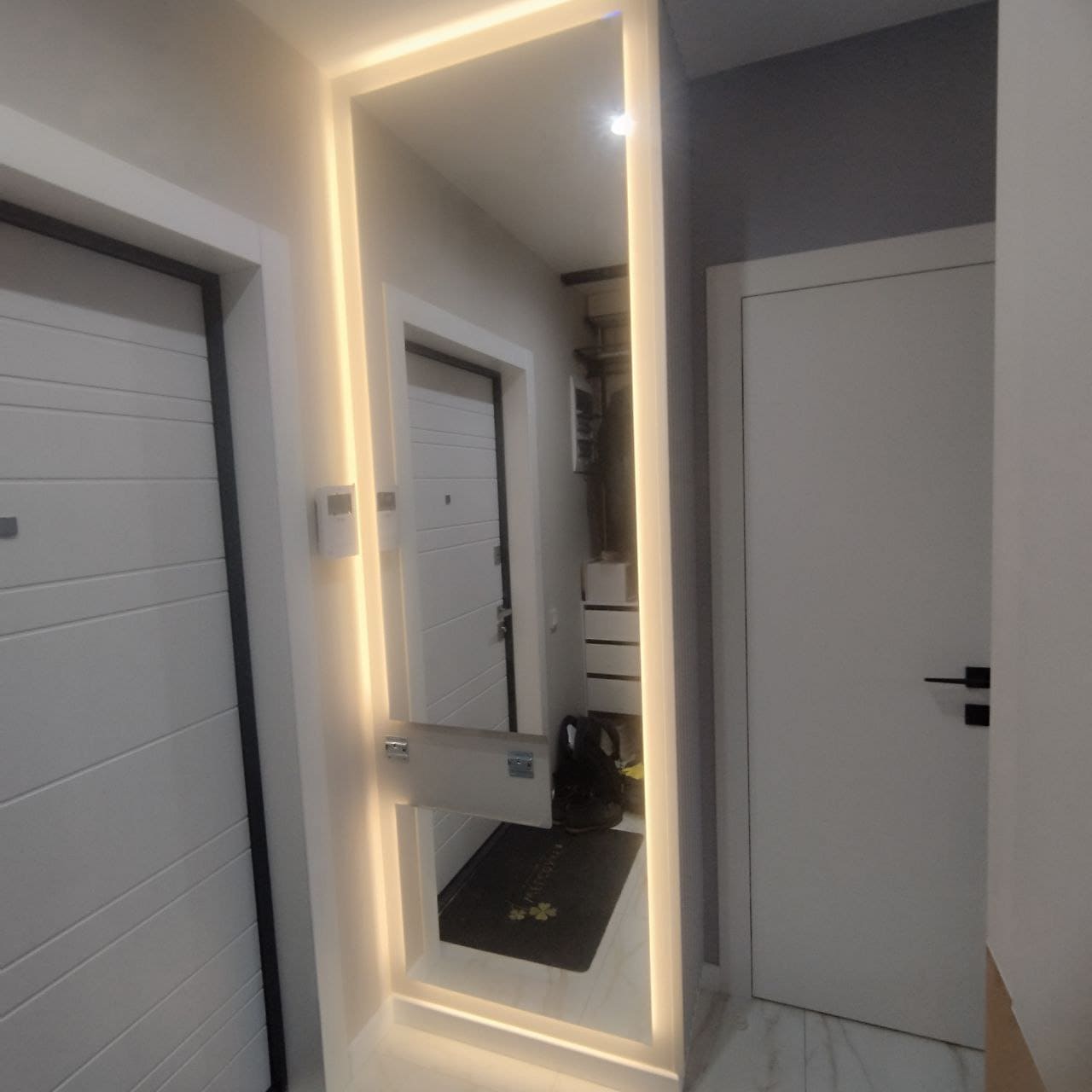 грандиозный багаж знаний, многоуровневые компетенции сотрудников, многообещающие, феноменальные сданные объекты дают возможность с высокой скоростью реализовывать нетривиальные подряды, как, например, выпуск зеркала с подсветкой и вырезом под тумбу в Вазасском переулке.