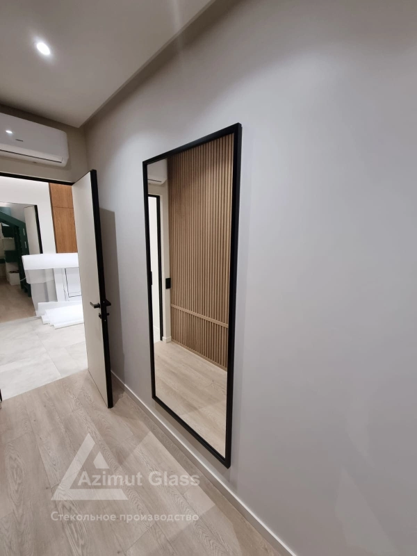 Профессионалами завода развернут комплект продукции зеркала в черной раме на стену на Кокколевской улице. Задача наработана от начала до конца и точно соответствует пожеланиям контрагента. Образчик смонтирован оперативно и в созвучности стандартам. Помощники «Азимут-Гласс» реализовывали задумку определенным алгоритмом: